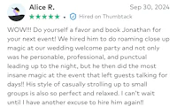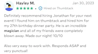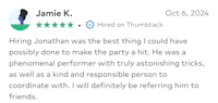 When he’s not performing, Jonathan loves solving puzzles, exploring NYC, and crafting new illusions in his studio. His mission? To create magical moments that bring people together.